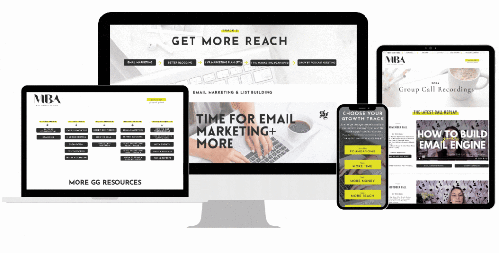 More money, more visibility, and more reach. And as they go through each track, they’re implementing the systems for every single area of their business. Now, there might be things in there that you don’t even need yet, because I’ve got things about podcast, guessing about starting your podcast. I have everything about building out your 12 month marketing plan.